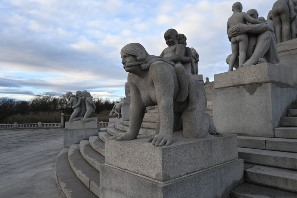 公園にある銅像って、なにかと偉業を成し遂げた人物がテーマになっていることが多いような気がします。ヴィーゲラン彫刻公園の銅像からは、名もなき市井の人たちの人生とか愛とか怒りとか悲しみとか、そういったものを感じました。