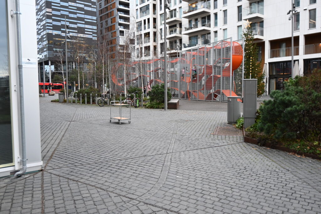 街の雰囲気に調和する遊び場。(寒そう)