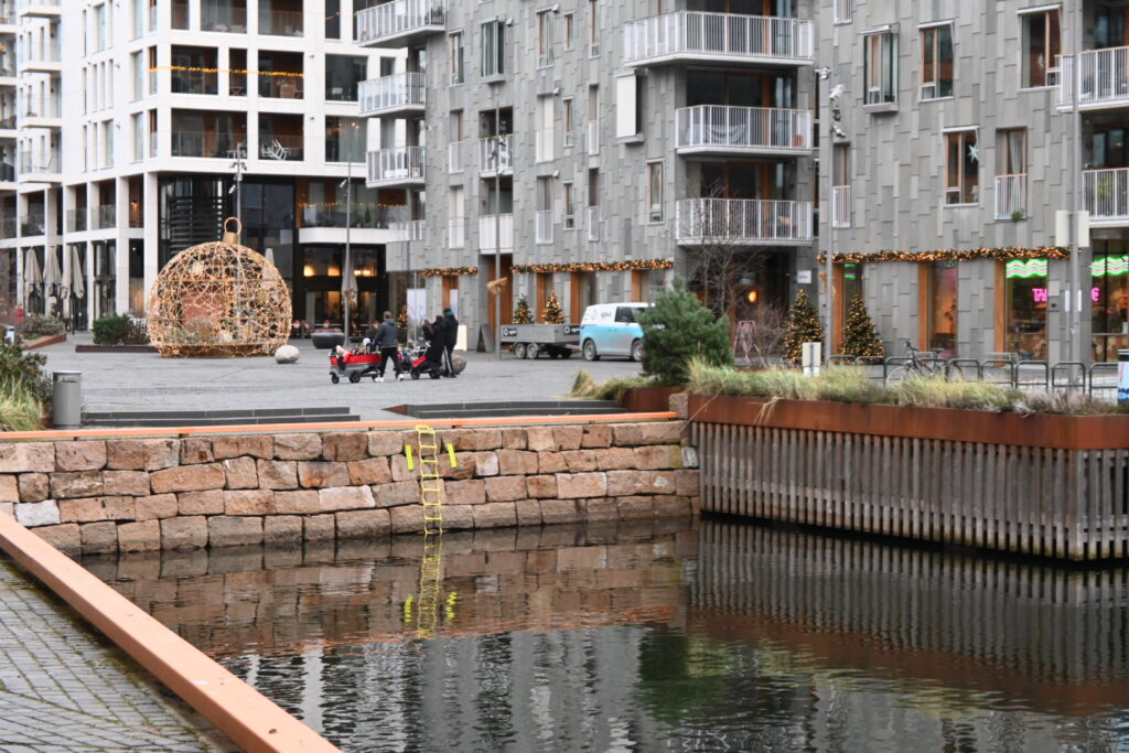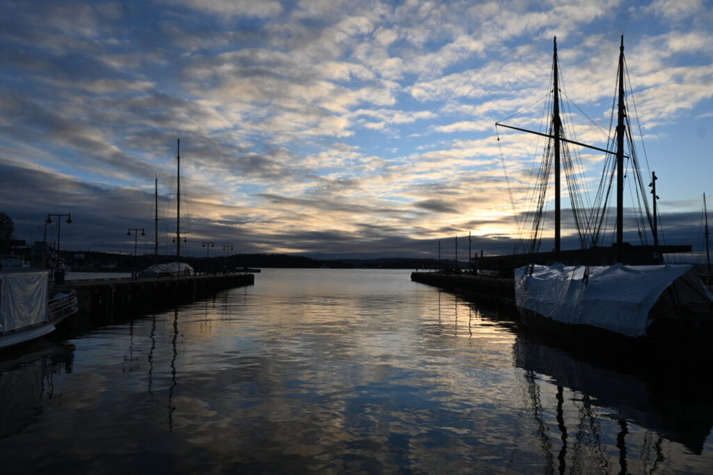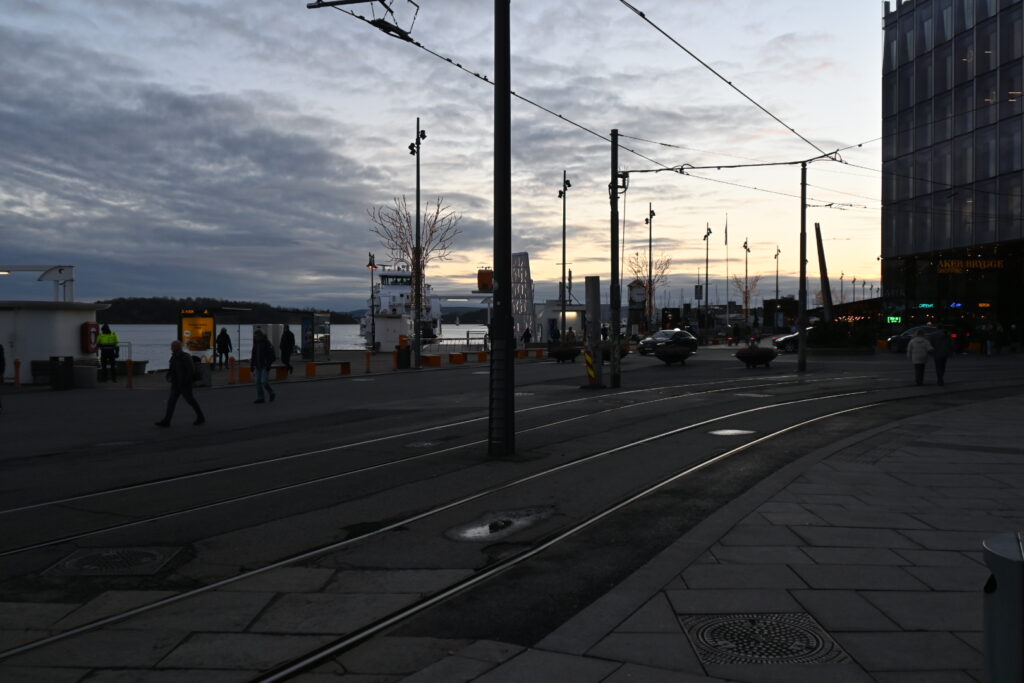 最寄りのトラム駅(Aker brygge)まで、港付近を散策。