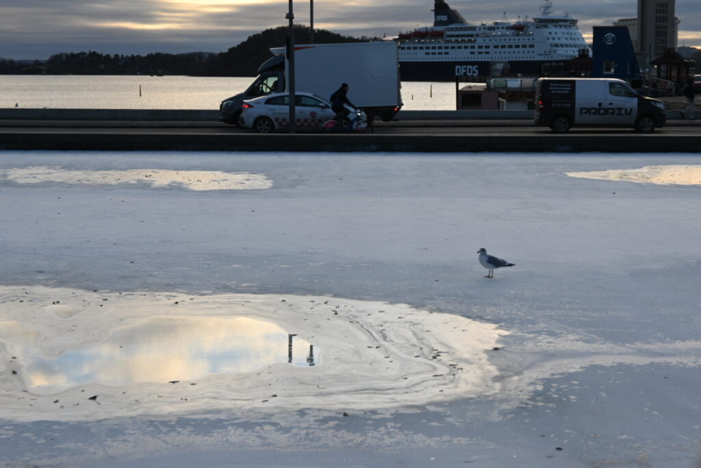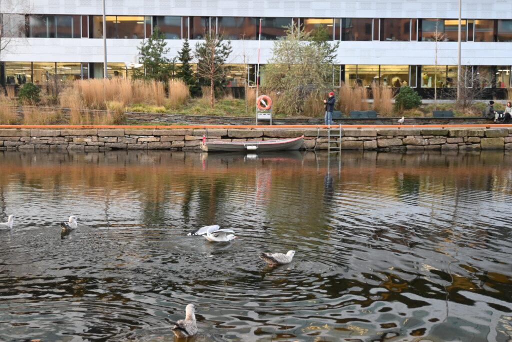 ムンク美術館はオペラハウスと隣り合っているのですが、その間に川があって、カモメが休んでいました。