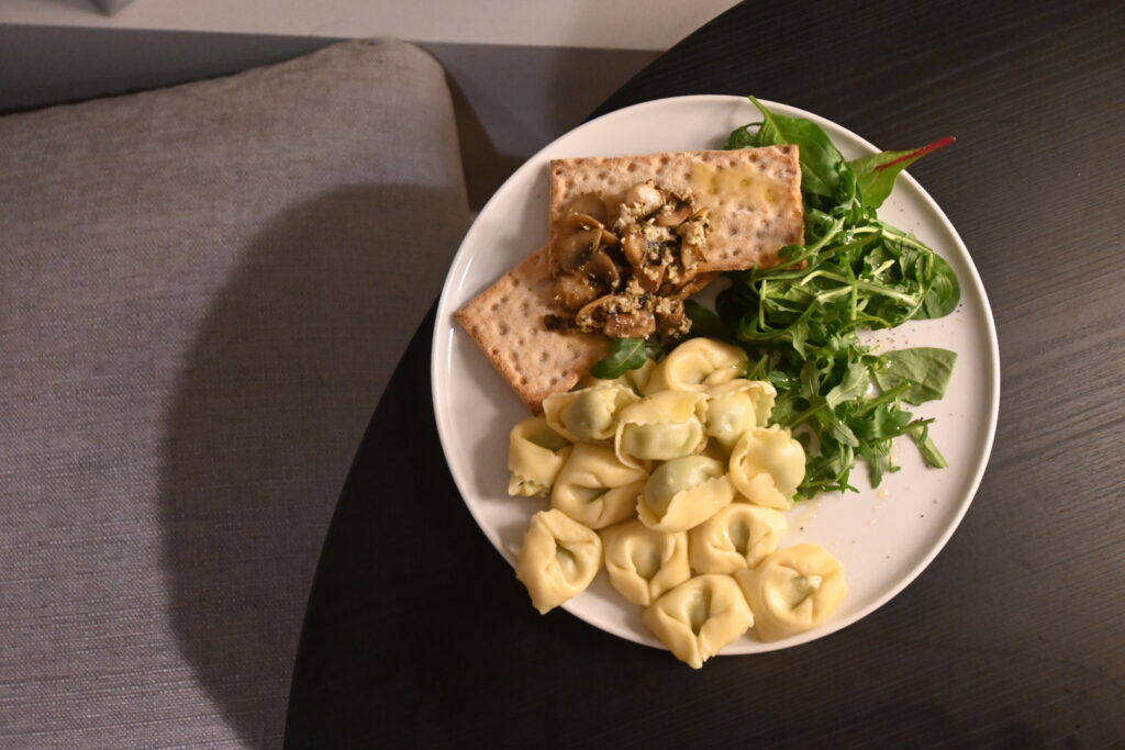 買ってあったニョッキをゆで、ベビーリーフを添える。