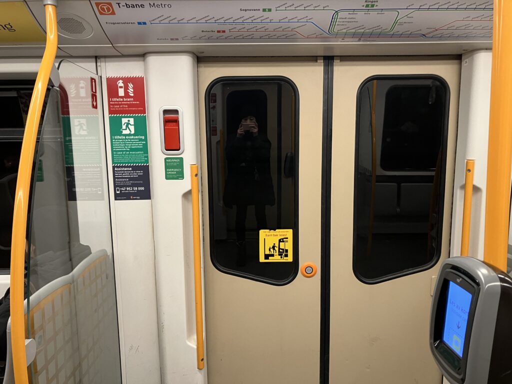 そういえば、オスロの地下鉄には、日本の首都圏の電車内のように過剰な広告宣伝がないなあと思いました。
