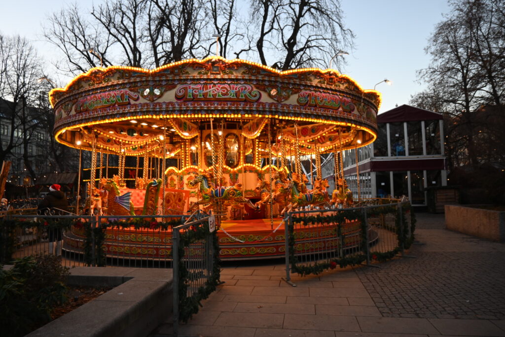 地上へ出ると、すぐ近くの広場でクリスマスマーケットが開催されていました。