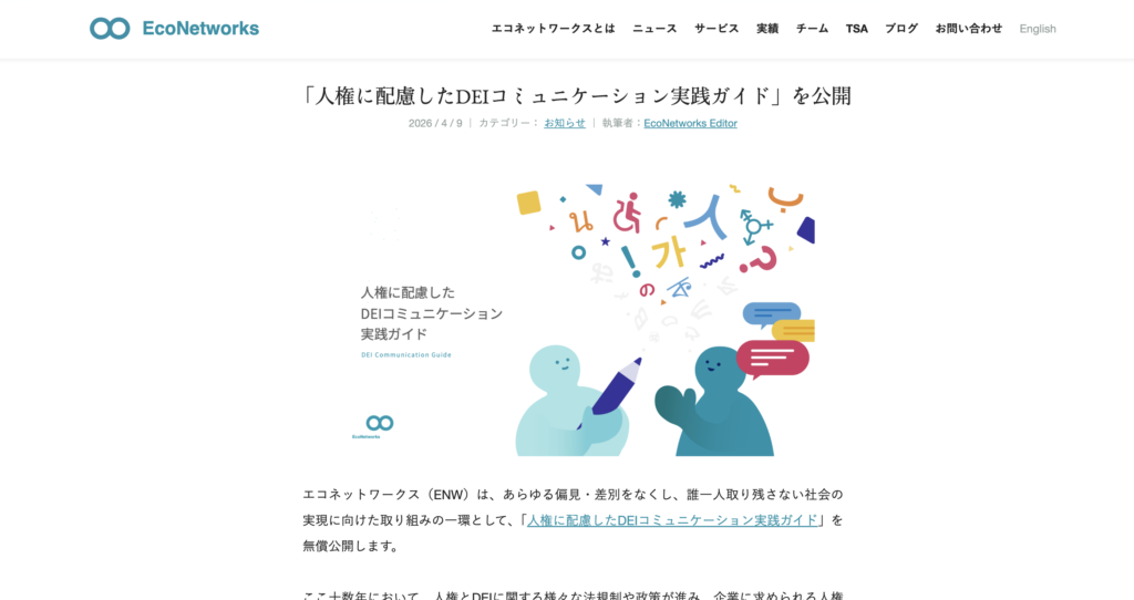 エコネットワークスによる、よりよい社会の実現に向けた新たな取り組みである「人権に配慮したDEIコミュニケーション実践ガイド」が公開されました。