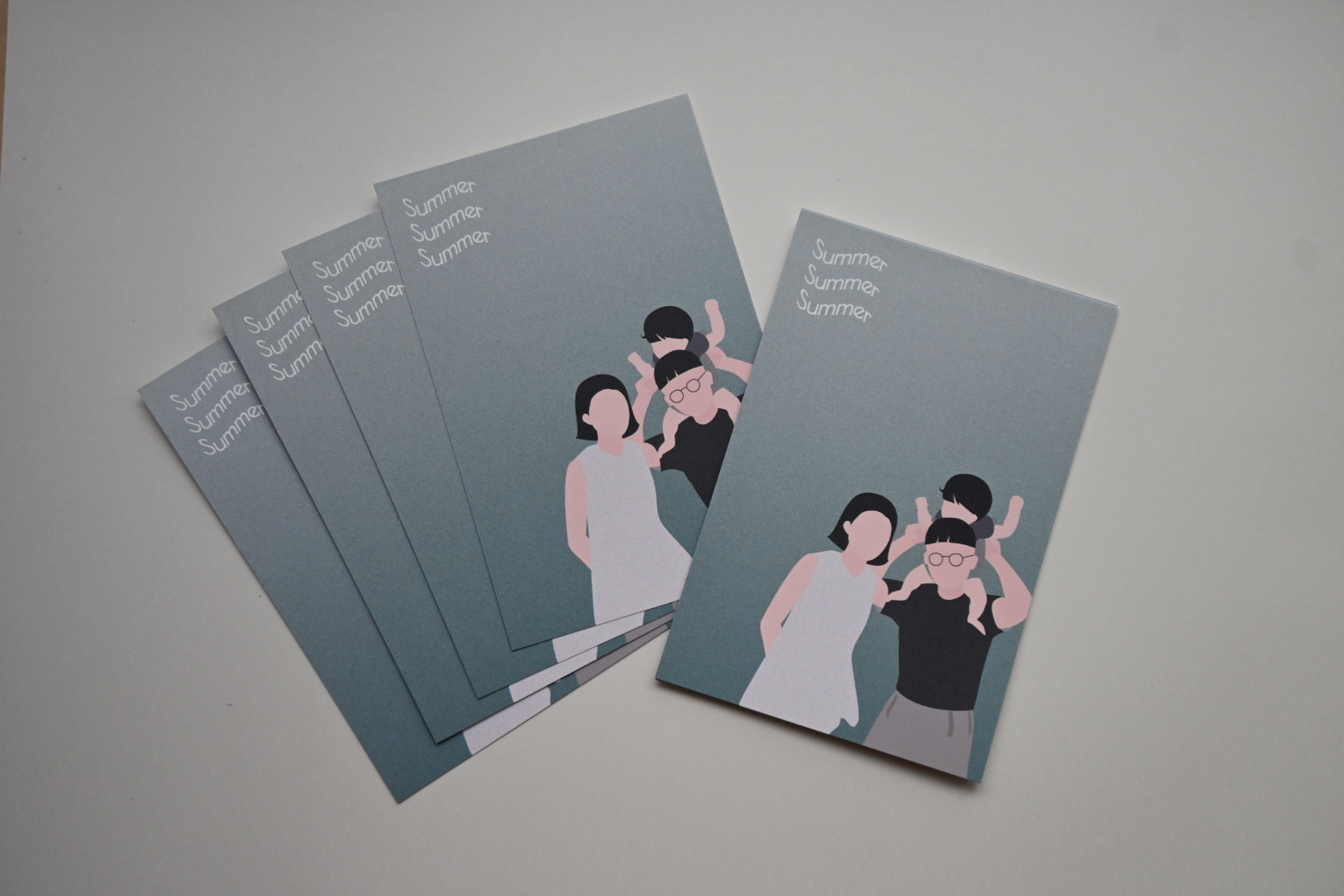 プライベートで、家族3人のオリジナルポストカードをつくってみました。
